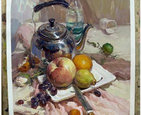 色彩靜物視頻教學(xué)-不銹鋼壺水果